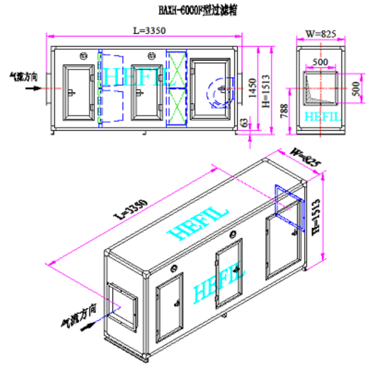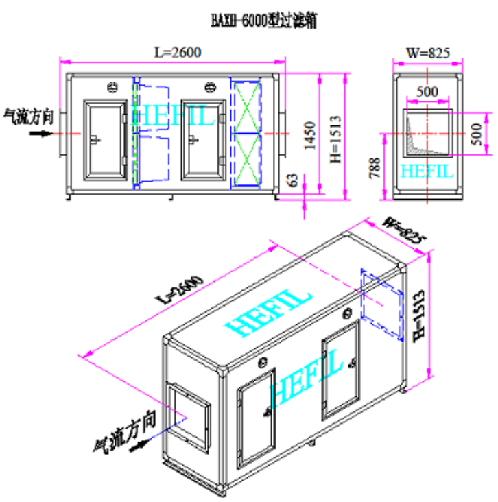 ◆ 過濾箱可設有單段、雙段、多段過濾:單段就是只配有一道過濾,雙段、多段指前段或后段可根據客戶要求增加初、中、高 效率過濾器;
