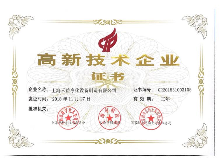 近日,上海市發(fā)出了《關(guān)于2018年第一批、第二批第三批高新技術(shù)企業(yè)證書的通知》,在本次公布的獲證企業(yè)名單當(dāng)中,上海禾益凈化科技有限公司榜上有名,再次順利通過國家高新技術(shù)企業(yè)復(fù)審認(rèn)定,證書編號為CR201831003105。