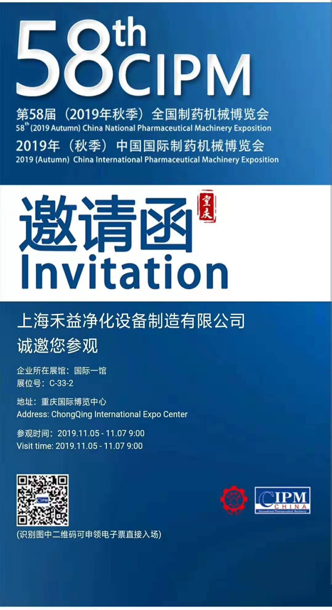 第58屆(2019年秋季)全國制藥機械暨中國國際制藥機械博覽會將于2019年11月05日至11月07日在重慶國際博覽中心舉行。該博覽會曾連續被中華人民共和國商務部列為重點支持展會之一, 是業界公認的專業化、國際化、規模大、展品全、觀眾多,集貿易、研討于一體的制藥裝備行業交流平臺。