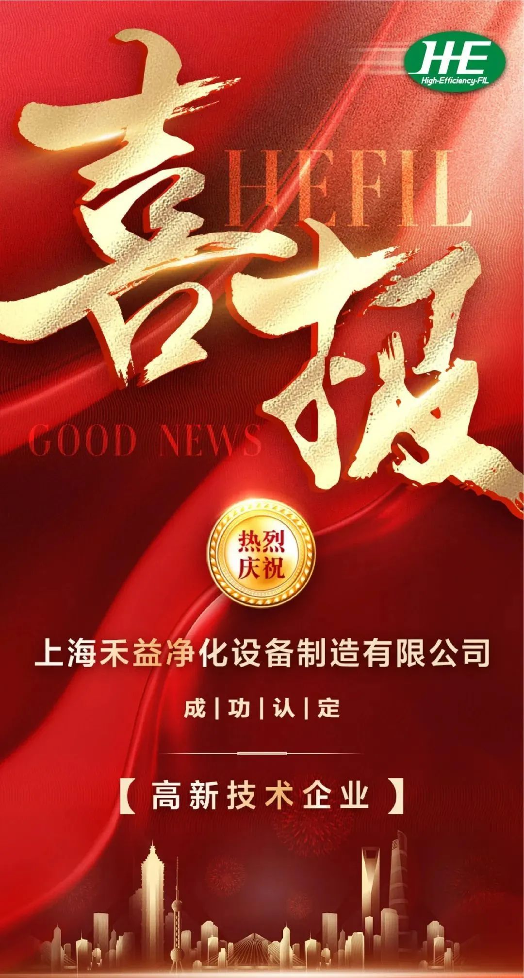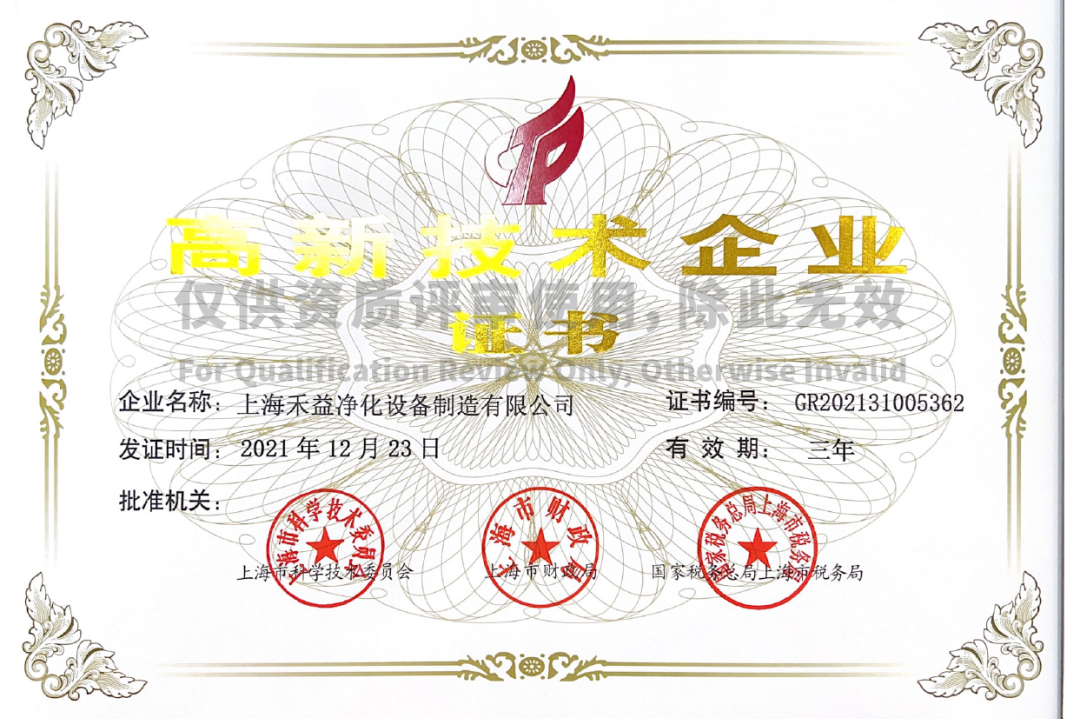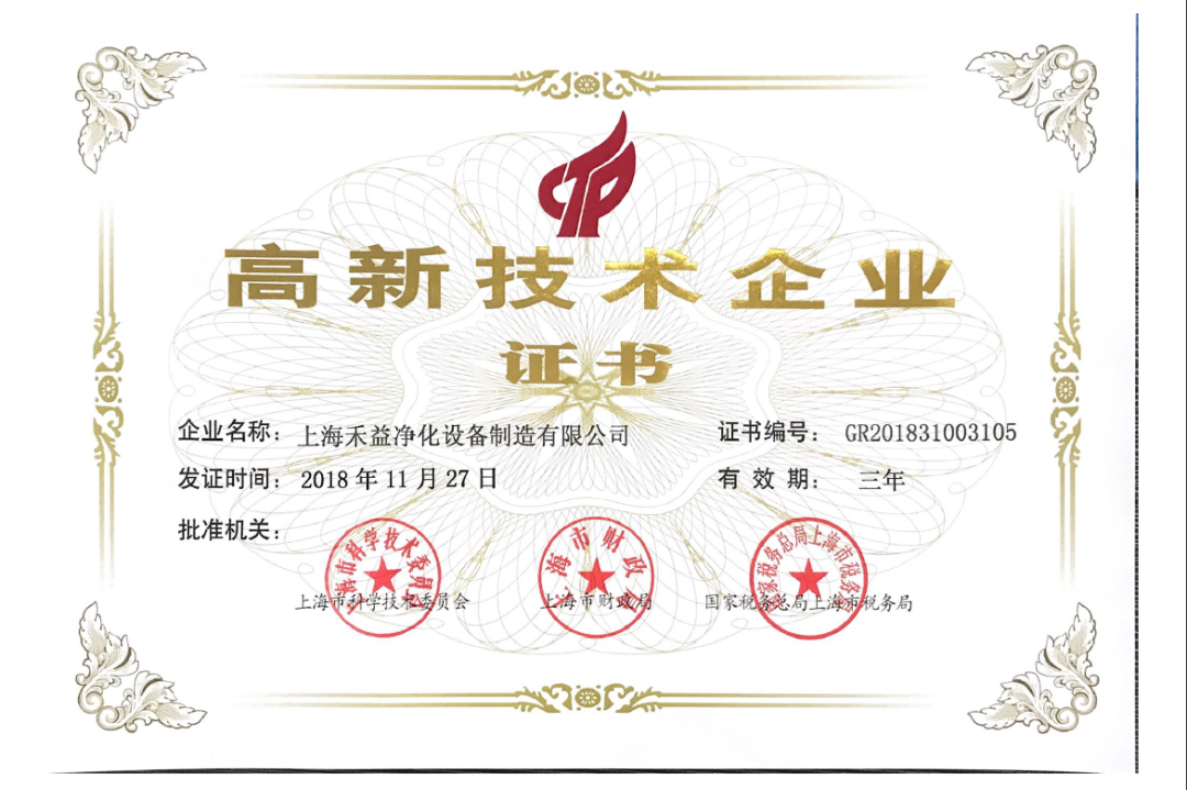 禾益環境高新技術企業認證從2015年定、2018/2021年復審再次認定,在《關于公示2021年度上海市第五批擬認定高新技術企業名單的通知》的公示中,上海禾益凈化設備制造有限公司再次入圍上海市2021年高新技術企業名單,榮獲高新技術企業認定。