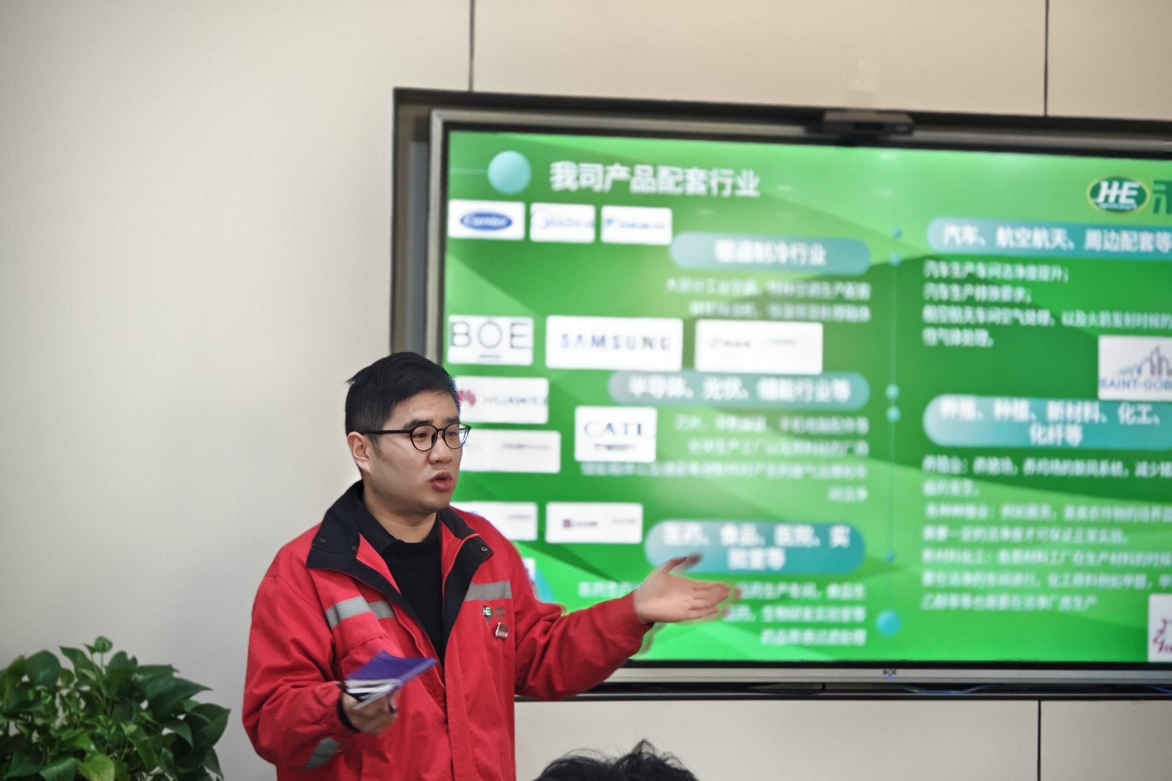 隨后,禾益環境產品經理王金航先生向同學們介紹了我司的發展歷史、業務范圍、核心產品以及解決方案等。著重闡述了禾益環境在智能制造領域如何快速構建“技術創新化、產品綠色化、服務智慧化”方面的研究成果及應用案例。加深了同學們對禾益環境“因潔凈而生·為環境而鑄”企業理念的理解。